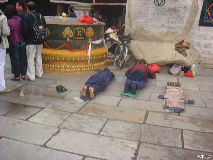 到大昭寺跪拜的藏人信众众多,在寺庙大门行跪拜大礼的甚多,男女老少都有。我2009年到过大昭寺,看见扑倒在地的信徒那虔诚的样子,实为震惊,当时并不能理解这种方式。随着对宗教的有所了解,他们那种真诚的心实属难得,从心底敬佩。佛教是劝人向善的宗教,不象有的宗教崇向武力,对异教徒大开杀戒。佛教对稳定人心和社会是有好处的。据我所知,除在80年代西藏出现过暴力行为外,一直是平和的,况且从新中国成立以来,党和人民政府制定了很好的民族政策,各民族一律平等,对西藏每年给予大量经济援助,西藏经济发展很快,人民生活大大改善,三十多年来西藏未出现动荡,虽然有外部势力支持达赖喇嘛搞西***立,且发展有暴力倾向的组织。现在中印在班公湖对峙,就有达赖喇嘛的支持者打头阵。这是与佛教教义不符,难以煽动民众,一旦达赖喇嘛撒手西去,西藏将会更加稳定和繁荣。