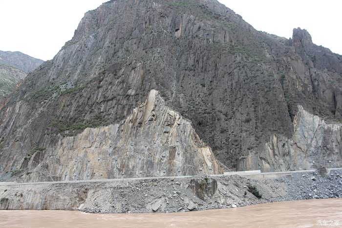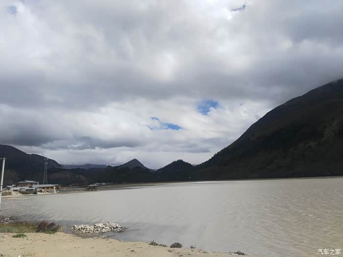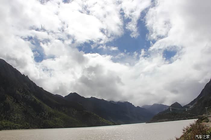 过怒江72拐,前行170公里,下午3点半到达然乌湖,这天虽未下雨,但前几天这里一直有阵雨,湖的上空乌云密布,湖水浑浊,美丽然乌湖的风景大打折扣,感觉不出美感。不作停留,沿318线顺河流而下,如天气睛好,这一带风景应该美不胜收,值得一看。