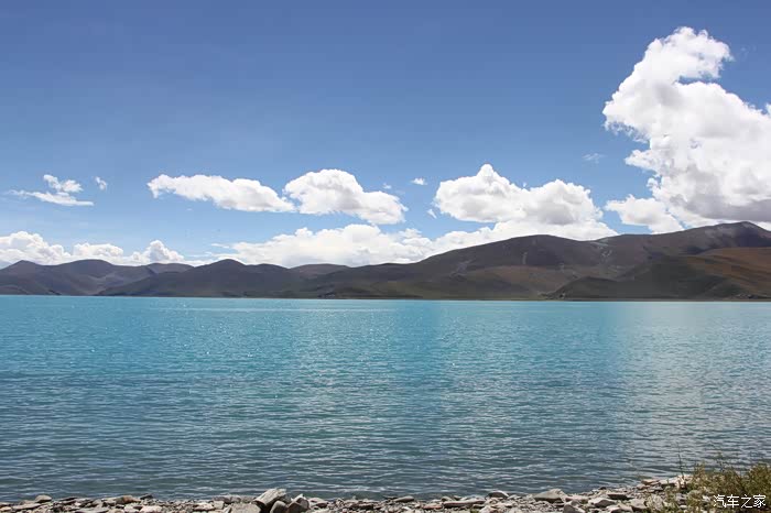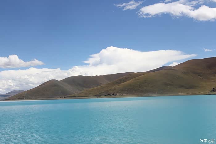 今天天气真好,万里无云,天空湛蓝。沿着雅鲁藏布江西行,江水较多且浑浊,据知情者说,雅鲁藏布江已多年没有涨过大洪水,今年雨水较为集中,山洪暴发,这在当地很是少见。下午约三点到达羊湖。羊卓雍措藏语意为“碧玉湖”、“天鹅池”,是西藏三大圣湖之一,位于雅鲁藏布江南岸、山南浪卡子县境内。湖面海拔4441米,东西长130公里,南北宽70公里。湖水均深20-40米,最深处60米,属淡水湖,为高原堰塞湖,大约亿年前因冰川泥石流堵塞河道而成。湖中山地突冗,湖内分布21个小岛,各自独立水面,岛上牧草肥美,野鸟成群。湖面碧蓝,尤如一片蓝色的镜面,给人一种圣洁之感。在湖边和耸立羊卓雍措标志的山上,游玩2个多小时,回到住宿地已是傍晚7点多钟。