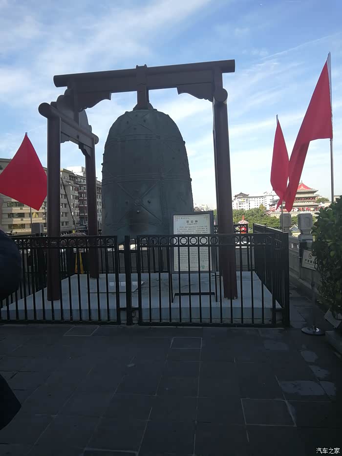 在宾馆边小店用过早点,坐地铁到市中心的钟楼。西安钟楼位于明城墙内东西南北四条大街的交汇处,西安钟楼是中国现存钟楼中形制最大、保存最完整的一座。建于明太祖洪武十七年(1384年),初建于今广济街口,与鼓楼相对,明神宗万历十年(1582年)整体迁移于今址。钟楼建在方型基座之上,为砖木结构,重楼三层檐,四角攒顶的形式,总高36米,占地面积1377平方米,非常漂亮和雄伟壮观。楼上景云钟为仿制。
