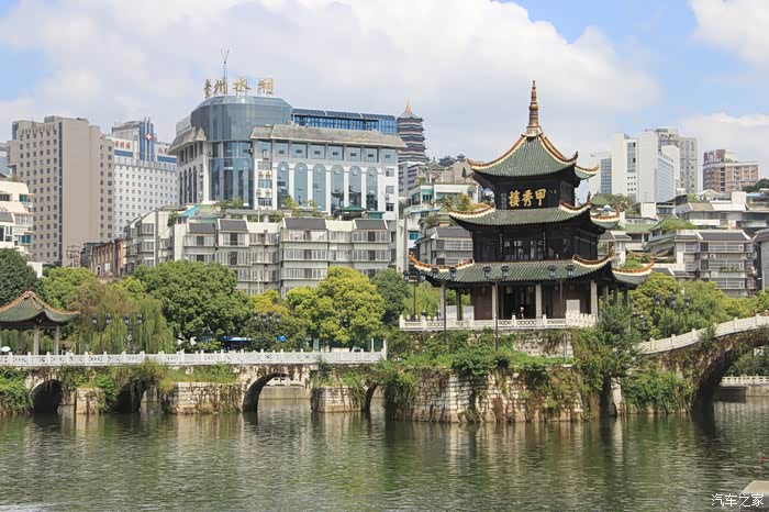 在榕江县城早餐后,上G76厦蓉高速至贵阳市,行程290公里。厦蓉高速在贵州省境内,基本上是隧道-桥梁—隧道,隧道与桥梁占比很大,高速通行费用较高,差不多为一元一公里,好在贵州省采取优惠政策,减免一半费用,车流量不大,相比,沪昆高速而言,道路好走,路况好,车流少。上午十一点多,到达贵阳市,下塌在贵阳市北面的一家酒店。下午到贵阳市名满天下的景区-“甲秀楼”去看看。