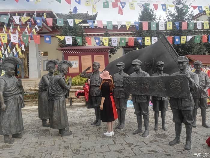 在独克宗古城日月广场北侧建有“迪庆红军长征博物馆”和一组雕像,记载红军过迪庆(中甸)的故事。1936年4月,红军二、六军团进入云南。先后占领嵩明、富民,后转向滇西。势如破竹,日行百里,在短短十余天内途经12个县境,攻占9座县城;30日,红二军团到达中甸县,争取藏族民众支持,在中甸县城一带短暂休整,红六军团在格罗湾休整。5月5日和8日,红二、六军团分两路北上,7月初到达甘孜地区胜利完成同红四方面军会师的战略任务。