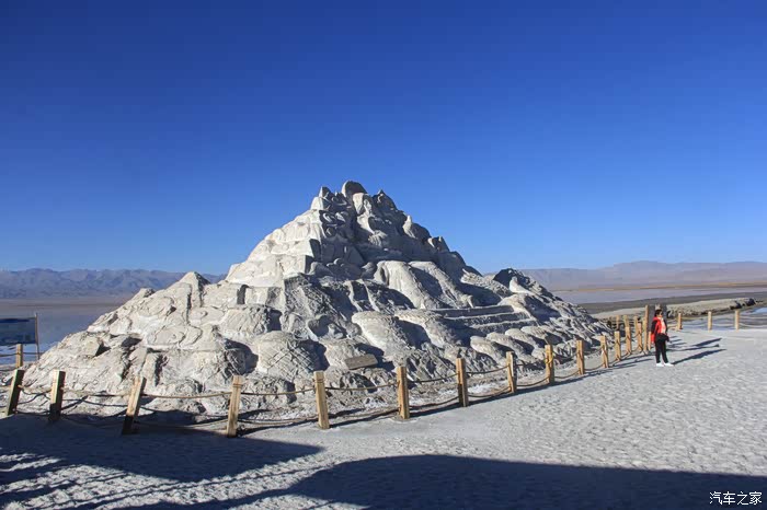从茶卡镇到盐湖景区,只有几公里的路程,很近。开车十分钟就到。上午8点30分到达盐湖。这个季节,已不是旅游旺季,停车场空荡荡的,人不多。购买门票后,坐小火车进入景区。