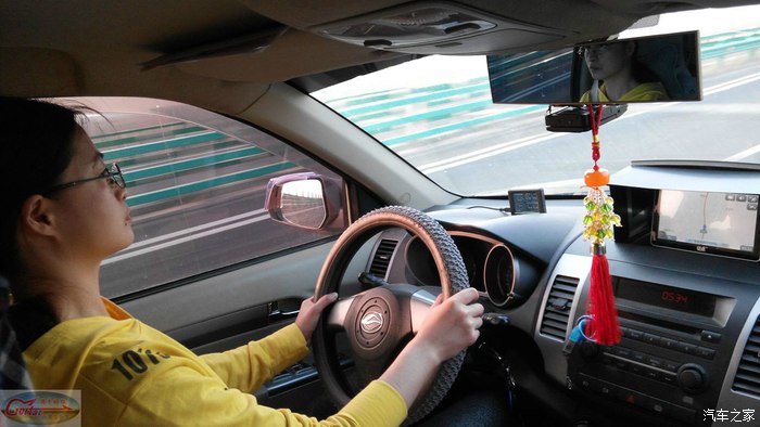 我媳妇有驾照,但很少开车,这是清晨亮天后 我困得撑不住了,换她开了一小时,我打个盹