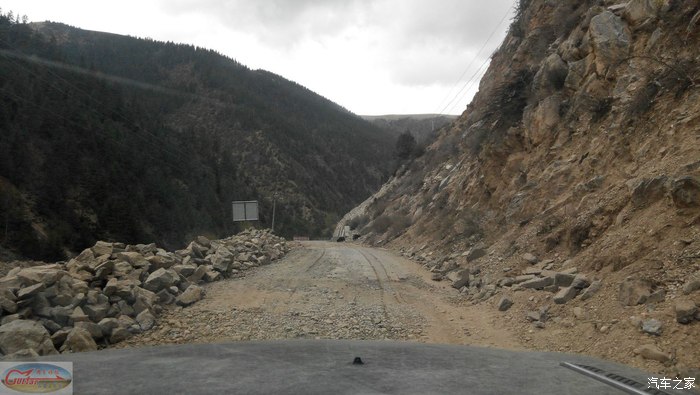 时常能看到从山滑下的落石土堆,下图这个已经占据了很大路面