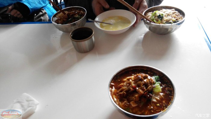 我要了一份牛肉面。。端上来是这个造型。。。。。 对面坐的是西安来的张哥与嫂子,
