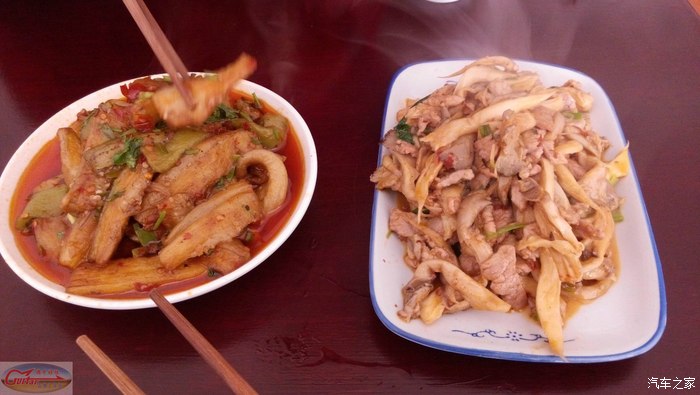 媳妇在车里焖米饭,腾一下中午剩的菜,就当晚餐了