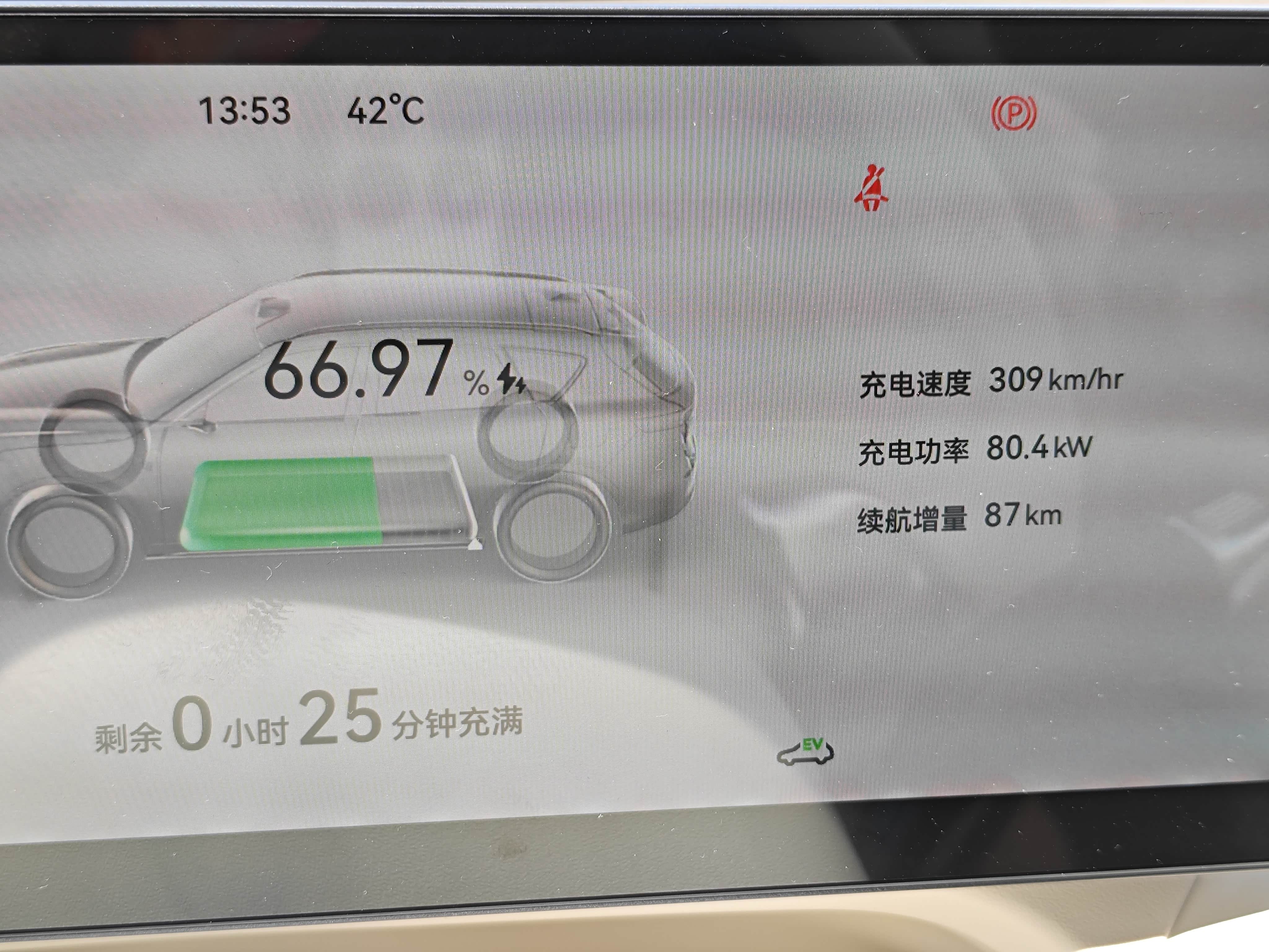 外出时,使用公共快充桩体验也不错,虽然不如纯电车但也足够了。初始电量只剩百分之十几,功率能跑到120千瓦,冲到百分之五十左右之后降低到100千瓦,到百分之七十左右就降到80千瓦。整体充电速度还比较给力,虽然随着电量升高功率有所降低,但是整体效率依旧可观,这大大减少了我的等待时间,让我能快速继续行程。