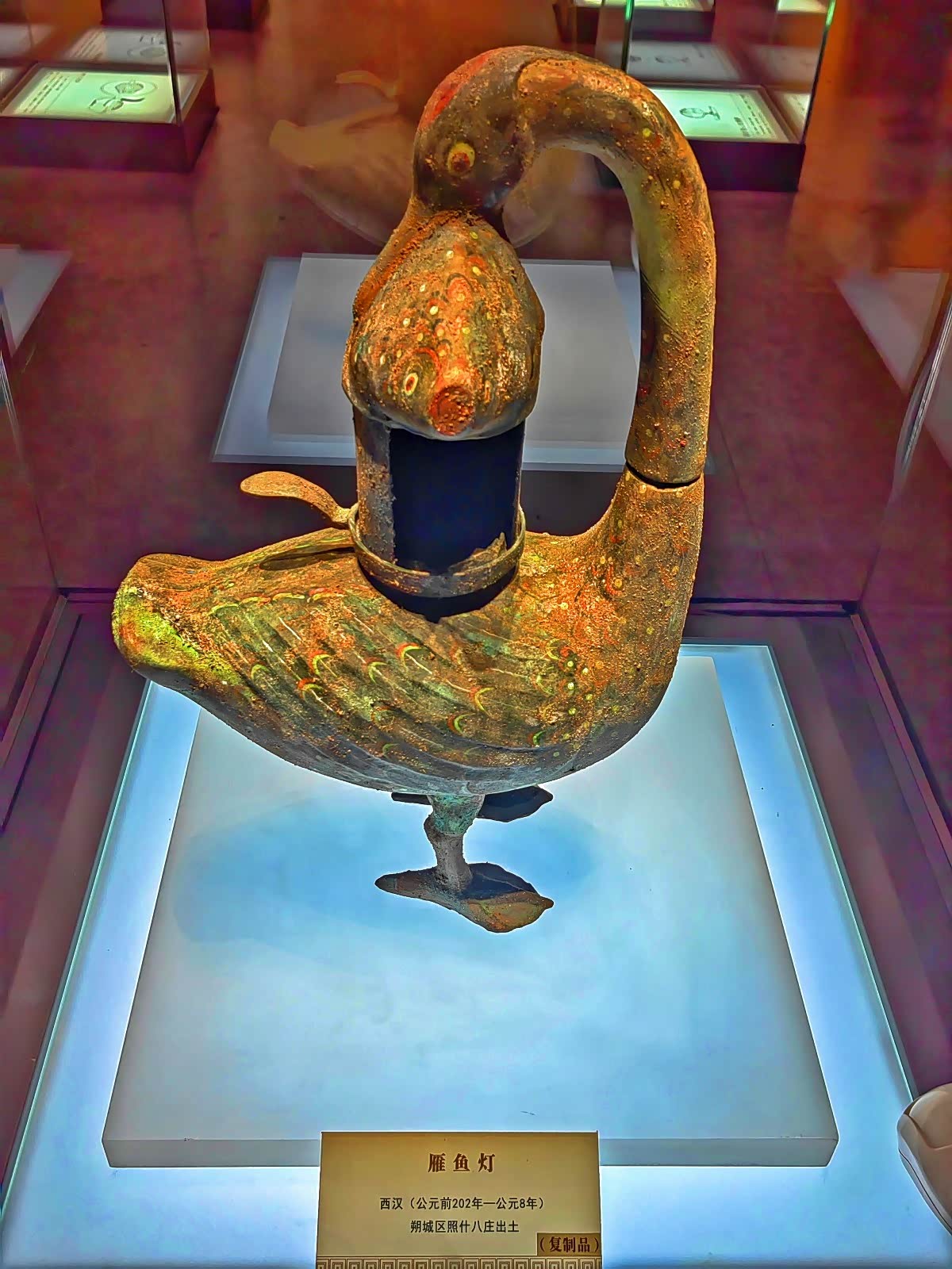 在朔州市博物馆的丰富馆藏中,有一件镇馆之宝——汉代青铜雁鱼灯,它静静地诉说着千年的故事,承载着厚重的历史文化。接下来,就让我们一起走进这件国宝,探寻其背后所蕴含的丰富文化内涵与引人入胜的历史故事。