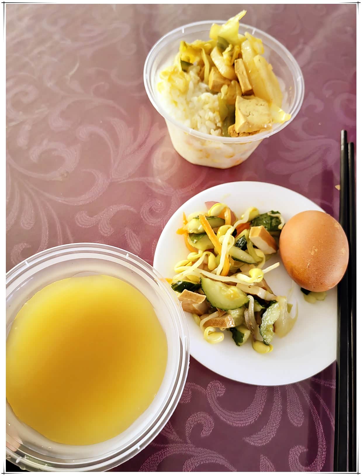 由于入住公寓时间较晚,一家四口都很累了,当晚晚餐俺选择定的外卖,有三种粥、烤串和方便面,晚餐45元。