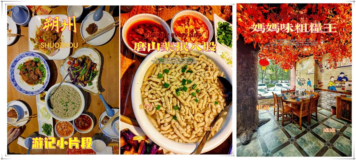 再品尝一顿朔州特色美食,就将踏上去往京城的归途了。。。午餐俺选在了“妈妈味儿粗粮王”这家当地知名的餐厅,据说他家的“抿面”非常有名,是其他餐馆吃不到的,俺一定要来尝尝。