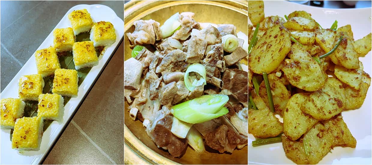 一家四口午餐200元,品尝了盐煎羊肉、大同烩菜、羊杂粉、小米凉糕、过油土豆片,就餐感觉很不错。。。