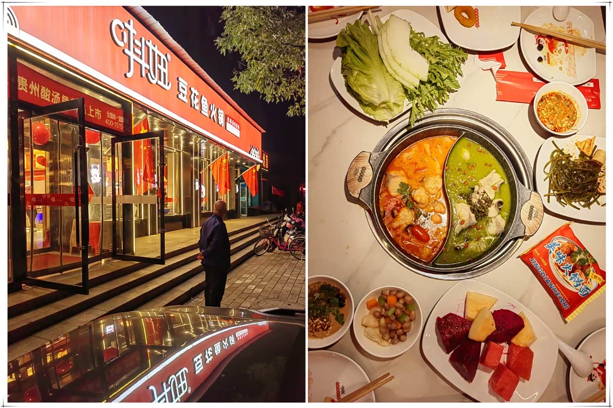 当晚俺们就在酒店楼下的“抖妞豆花鱼火锅”店就餐,大众点评网购四人餐177元,自助火锅菜品很丰盛,主要为了一家人多补充这两天缺乏的“维生素”,这顿蔬菜、水果大餐太棒了,当然鱼片锅底的味道也很棒!!