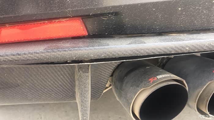 过了没多久,感觉只有前杠,有点头重脚轻,忍不住冲动消费,一次性订了树脂开孔机盖,碳纤维四出尾唇,树脂侧裙,还收了一套车友的二手排气中尾段。