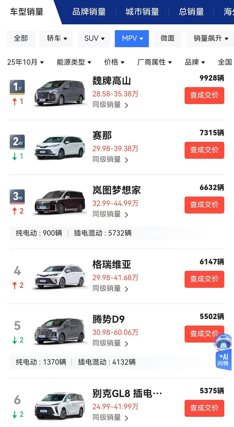 十月份销量榜出炉,D9跌到5500辆,排名第五。本来就是在新能源中大型MPV里占据了先发优势才卖得好,现在价格一路走低,销量也一路下滑,还在不思进取。有句话说的好,凭运气赚的钱,一定会凭实力亏掉。