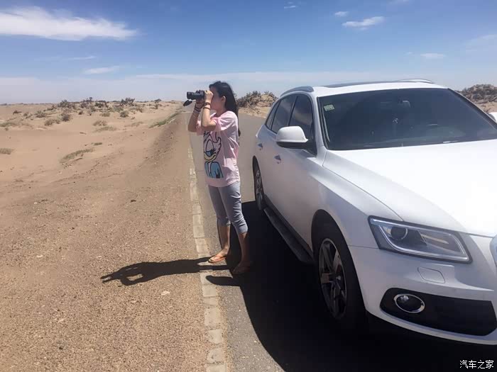 今天,我们要驱车645公里,途中要面对恶劣的路况和传说中的无人区。大家都早早的起床收拾好了行装,上午7时30分,我们驱车出发了。途中,我们路过一个叫银根(设有安全检查站,但已经废弃)的地方,了解了一下“人根”景点的情况。因那天风尘比较大,我们驱车只是在景点附近转了转,也没什么大意思,拍了几张照片就走人了。S312路况的确不好,越往西走,山越高、路越窄、风沙越大,破损的路面也越来越多。特别是路面只有6米宽,途中行驶的还基本上都是大型货车,来往的两车交汇时很危险,需要格外谨慎。女儿驾驶车辆会车时,曾出现过两次右侧车轮压到了公路边的沙石路面上,巨大的颠簸感着实令人紧张。不过,好在驾驶大型货车的司机们都很讲究,他们严格遵守着交通规则。途中,我们看到了京疆高速公路正在紧张的修建之中,估计明后年就能通车了,到时自驾者们就不用这么辛苦了。在600多公里的S312和五乌线上,只有一个叫乌力吉苏木的地方有加油站,如果错过了这个加油站,那你就只有打求助电话了!
