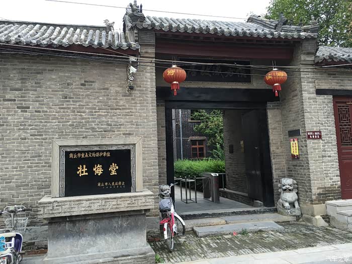 我们一行走下古城关楼,沿着大街散步,古城内有着众多的商家和路边的小商小贩,感觉尚处于旅游区建设的初期吧,行人车辆纷杂,管理有些混乱。我们一行来到了城内一座建筑物前,只见大门侧方石碑上书:壮悔堂。我们在参观游览中,巧遇到一位老者,老者可能是《桃花扇》的(研究)喜爱者吧,与我们聊起了“壮悔堂”。壮悔堂是“中国古代四大名剧”之一《桃花扇》的主人公侯方域壮年著书处,也是他与“秦淮八艳”之一李香君的隐居之所。壮悔堂就坐落在商丘古城北门近侧,这座老宅前后三进院子不算大,然而我相信“侯公子”的大院当年恐怕远不止这个规模。我站在壮悔堂前,翻想当年人事,侯公子这个“悔”字,真是蘸着骨髓里的血写出来的。怎么说呢?就好比修炼了一辈子,冰清玉洁一心向善,马上就要成佛,忽然很不得已地“自愿”吃了一碗狗肉……