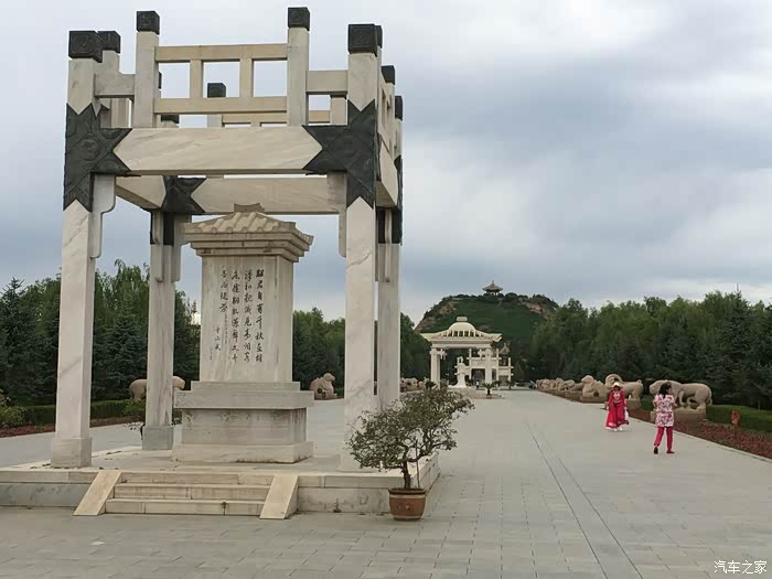 早上,我们离开了汉庭酒店向南行驶了二十公里,来到了昭君墓。几天来的辛苦,女儿感觉有些累了,我们就安排她留在车里休息了。昭君墓园当时正进行维修,我们也只是大概的转了转、参观了一下匈奴历史博物馆。昭君为了汉匈两族的和平友好,充当了汉族的"和亲使者",出嫁到塞北,嫁给匈奴首领呼韩邪单于(单于就是"王"的意思),为民族友好作出了杰出贡献。实际上,除了青冢外,内蒙古大青山南麓还有几个昭君墓。王昭君埋葬在哪里?这件事本身其实并不重要,重要的是为什么会出现这么多昭君墓。显然,这些昭君墓的出现,反映了内蒙古各族人民对王昭君这个人物有好感的,人民是永远怀念她的!