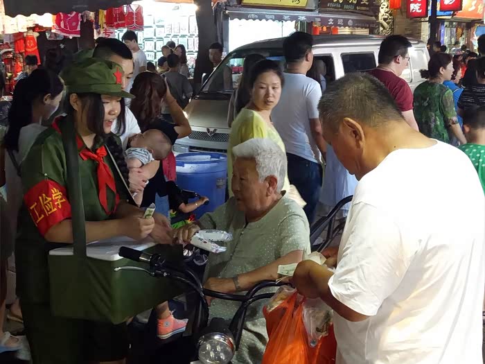 我们为了多品尝几种小吃,每次对相中的美食只要一份,二人一同品尝。在孙家老铺肉夹馍店里,我们遇到了感人的一幕:我们桌对面两位游客也讲东北话,于是我们与之聊起天来。这是来自吉林一个小城市的母子二人,老太太有八十多了,儿子也应有五六十岁。儿子退休了就骑着电动三轮车带着老母亲出来游玩了,他们走一路玩了一路。在这家店里俩人只要了一份肉夹馍,老母亲只吃了几口就推给了儿子,两人互相推让着。看到他们那种“母疼子、子敬母”的景情,一种敬佩之情在我脑海里由然而生!夜深了,当我们的肚子实在是吃不下时,我们才恋恋不舍地离开、向宾馆走去。