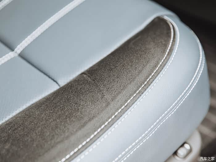 星脉的座椅用了两种皮质拼接,一种是细腻的真皮,另一种是麂皮。