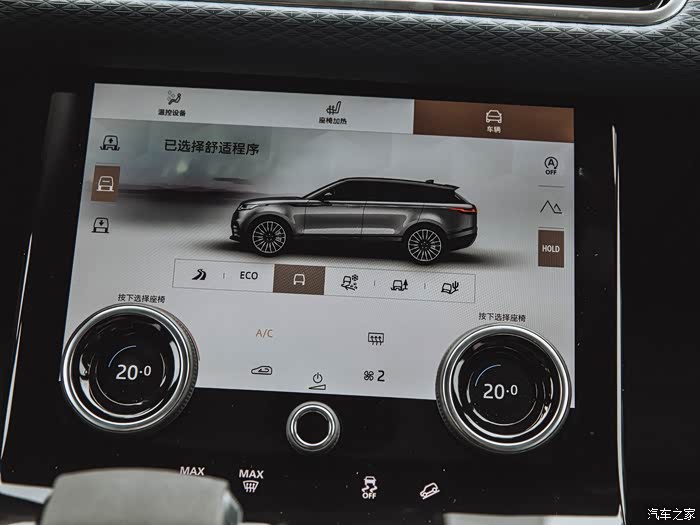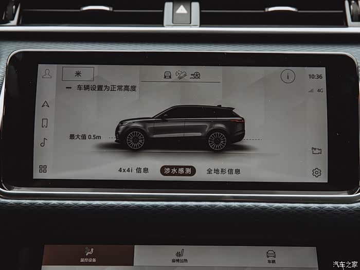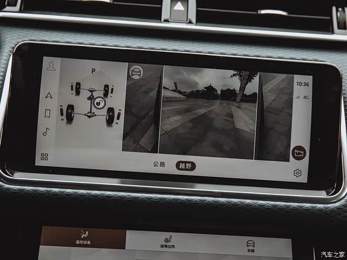 下方的液晶屏系统界面,空调、座椅、车辆功能调节全部集合在这里。驾驶模式(运动、经济、标准/舒适、越野、雪地)路虎的看家本领,全地形反馈系统已经非常成熟,完全可满足日常驾驶路况。