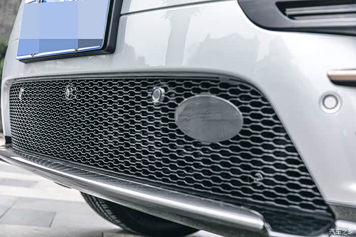 车头下方保险杠密密麻麻的网格设计,星脉的细节性一览无余,两边的横幅装饰条,金色的点缀件相当的帅气。