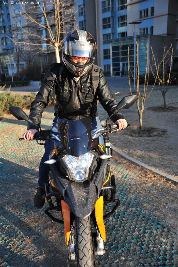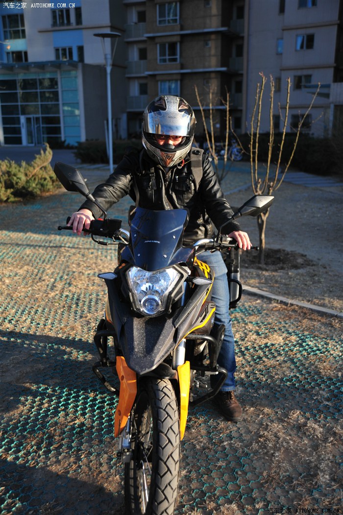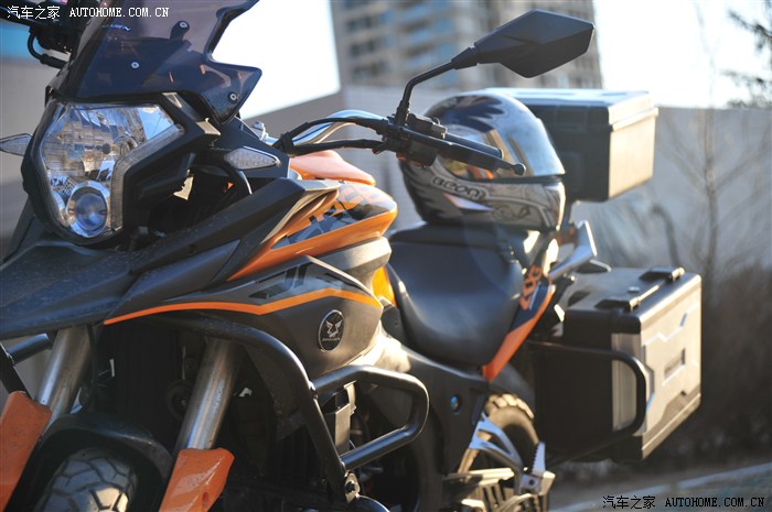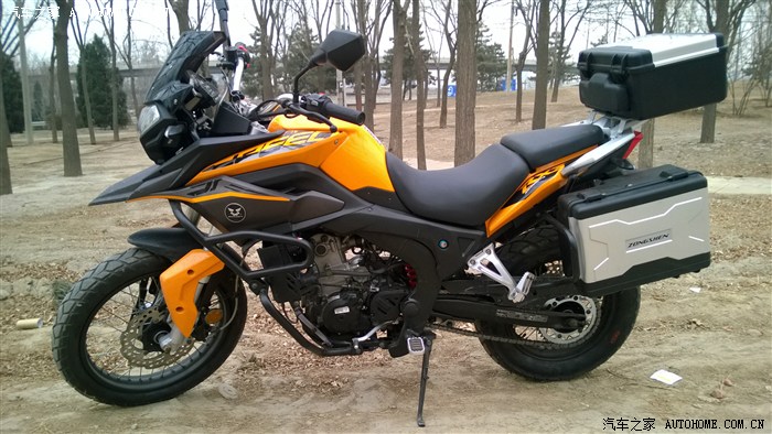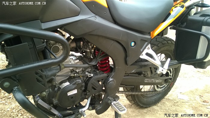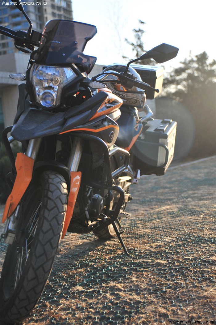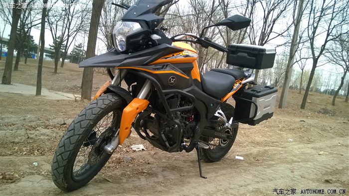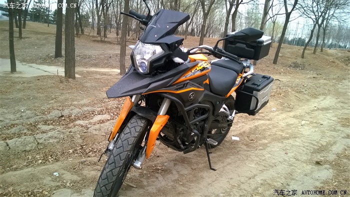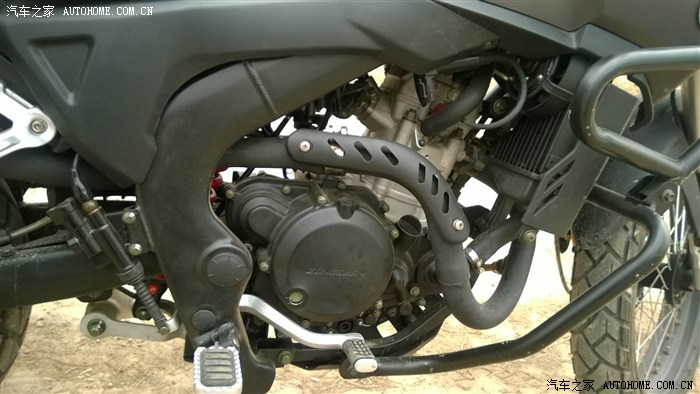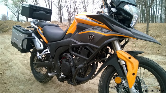 这车座椅高度刚好合适,骑久了也不是很累,算是比较舒服的。今天一早把车从地库骑出来有个拐弯,没太注意差点摔了。这车扶正了感觉很轻,要是歪了没扶住就特别沉。所以要有心理准备。这车出厂就带发动机护杠,也算厚道,虽然看起来略显单薄。做工也一般,跟整车粗犷的风格差不多。我觉得买这车就一定要喜欢这车的定位和风格。这车是能去可可西里,能去西藏玩的。当然有的人说踏板也能去,那是在有路的前提。这车能开辟一条路去西藏。哈哈。不喜欢这风格的,还是老老实实买GW或者Z250或者T2吧。