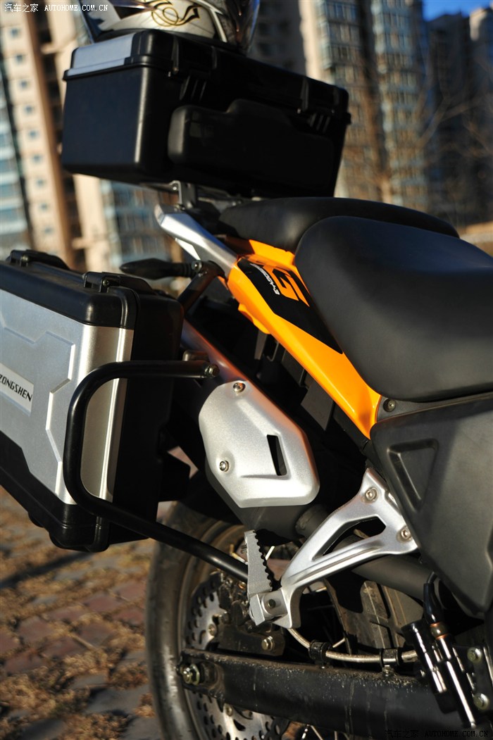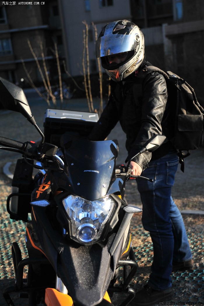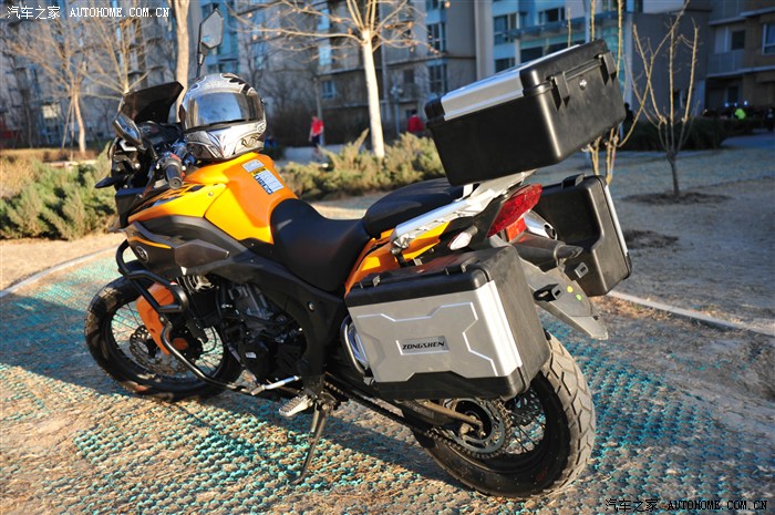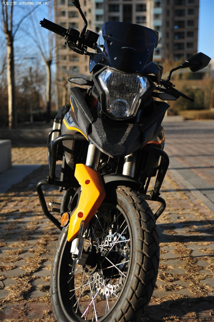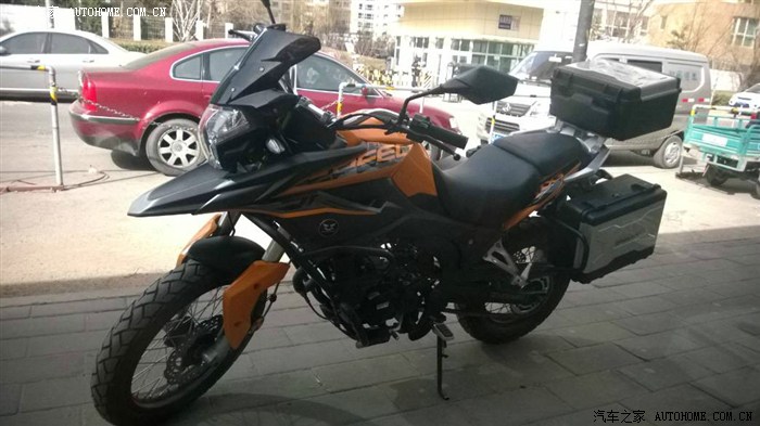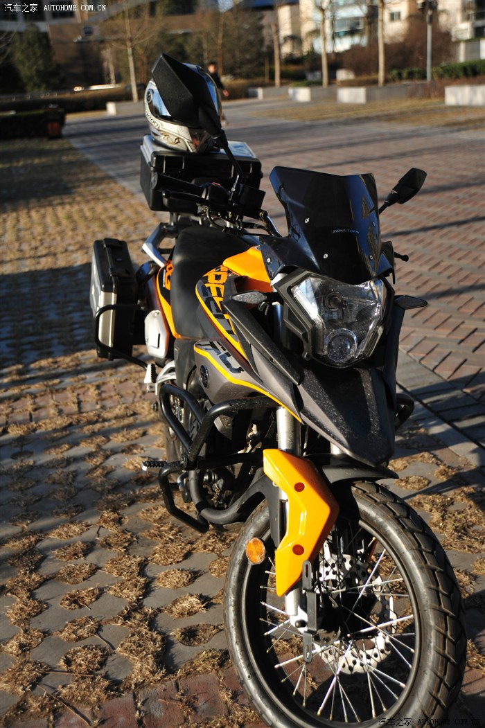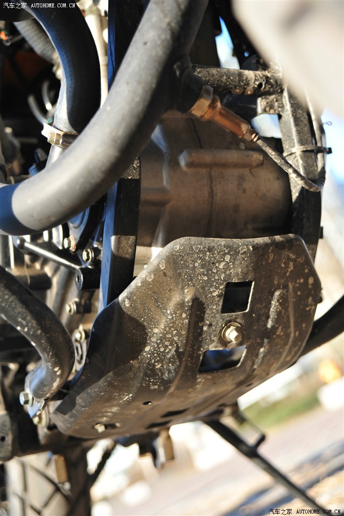 这车座椅高度刚好合适,骑久了也不是很累,算是比较舒服的。今天一早把车从地库骑出来有个拐弯,没太注意差点摔了。这车扶正了感觉很轻,要是歪了没扶住就特别沉。所以要有心理准备。这车出厂就带发动机护杠,也算厚道,虽然看起来略显单薄。做工也一般,跟整车粗犷的风格差不多。我觉得买这车就一定要喜欢这车的定位和风格。这车是能去可可西里,能去西藏玩的。当然有的人说踏板也能去,那是在有路的前提。这车能开辟一条路去西藏。哈哈。不喜欢这风格的,还是老老实实买GW或者Z250或者T2吧。