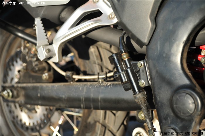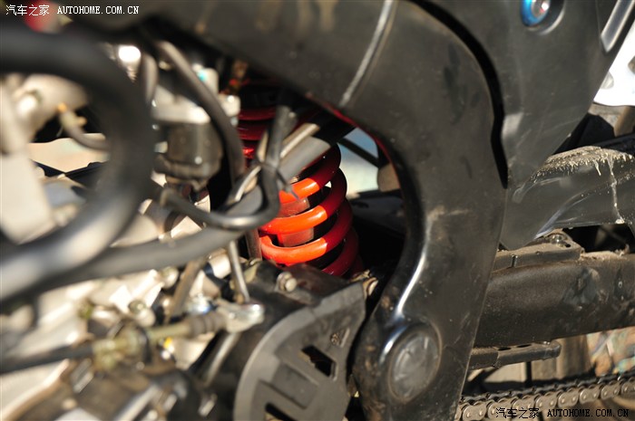 看到中置减震了么,红色的,采取的多连杆结构,这个结构只是在这种车或者越野上才有的