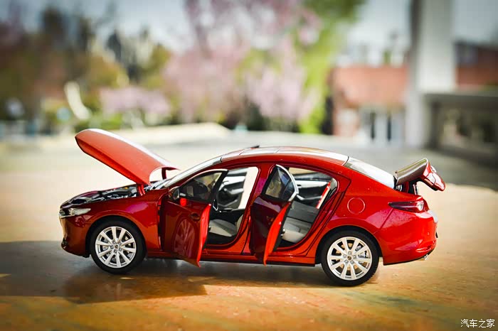 很多人都在看马自达车的时候都很喜欢马自达车的红色 ,因为马自达车的水晶魂动红这个颜色是马自达的专利技术漆,在马自达的车漆颜色中,水晶魂动红比其他颜色贵3000元,铂钢灰比其他颜色贵2000元,以上两个颜色都是专利技术漆,颜色要贵,这款红色的马自达3昂科塞拉车型外形比较时尚靓丽、车的颜色、做工都比较好。拍照的时候是在春天的一个早上。