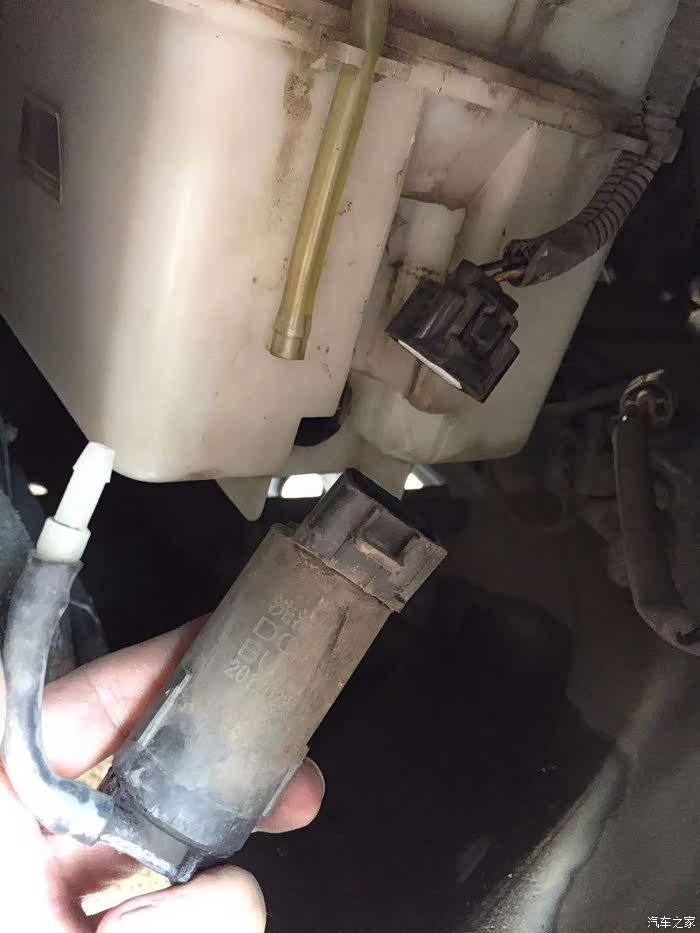 马上微信咨询了一下修理店师傅,直接判断是喷水电机坏了,要换,60、70块吧,看来老帝豪这喷水电机是很多人去换过的啊