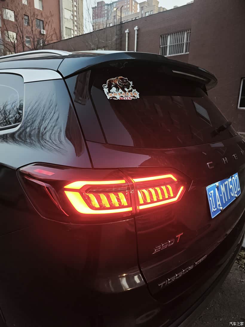 等红灯时随手瞥了眼后视镜,尾灯顺着车身腰线勾出条饱满的红弧,比旁边车那盏蔫蔫的“小蜡烛”精神太多,连后窗贴的老虎贴纸,都被这红光衬得毛乎乎的,像要从玻璃里钻出来。