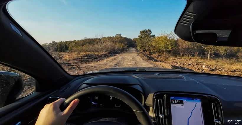 或许你会担心你的车动力是否足以应对山路。请放心,作为低山丘陵地带,这里的道路坡度总体十分和缓。我驾驶的沃尔沃C40是一台前置前驱的纯电车型,231匹马力和高功率的油车差不多,动力输出平顺而充沛,应对这种路况堪称游刃有余,在这种山区路面,完全是从从容容、游刃有余。