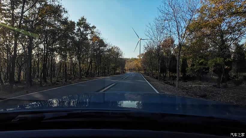 这段路上一个最意想不到的景观跃入眼帘——山脊之上,一台台巨大的风力发电机缓缓转动着叶片,构成了一道极具未来感的风景线。