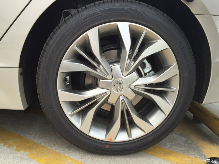 18寸大脚,韩泰轮胎。个人认为没有帕萨特高配的那个密集型轮毂那么好看