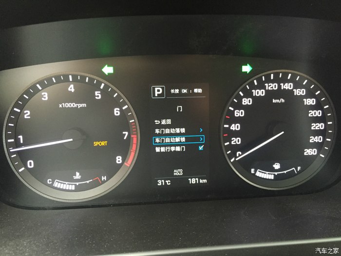再说说AUTOHOLD功能,中文称自动驻车。开了一个多月,感觉索九的自动驻车功能比迈腾强(不好意思啊,只能跟朋友的迈腾对比,很少开其它车,迈腾是好车,只是不够钱买2.0T啊),首先,迈腾在车速为零的时候自动驻车就启动了,而索九车速为零的时候并不立马启动,它会在你深踩刹车的时候才知道你要真的停车,深踩后才启用,这在低速跟车和倒车的时候优势就体现出来了;其次,自动驻车后轻点油门起步,迈腾明显地有一顿挫感,但索九可以说非常平顺地起步,塞车的时候这功能显得非常强大。另,根据百度搜索的内容,大众的某高级工程师建议他们的涡轮增压车在等红绿灯时不要挂空挡,而是一直放在D档,那索九...?反正我也照做了。特意留意了一下发动机转速,在车速为零时发动机转速大概为800,在D档深踩刹车启动AUTOHOLD发动机转速大概为780。(2015.5.27)