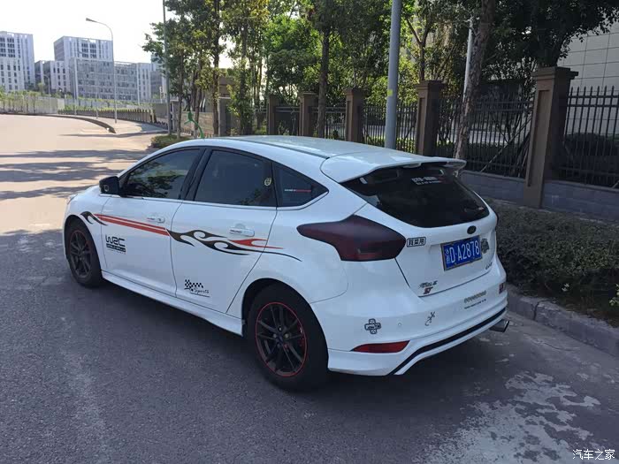 福克斯虽然自带聚焦效果,但大多拥有它的人都并不满足,总是有一颗不安分的心,趁着年轻,做自己爱做的事,而我对于爱车的态度就是让他变成我喜欢的样子,变得炫酷。我的福克斯,是15款1.0T自动风尚,由于当时对动力要求不高,虽然特喜欢运动版的外观,但考虑到预算原因,而且外观也能自己改装,所以选择了1.0T两厢,提车后就开始在之家论坛搜索各种福克斯改装案例,果断在某宝买了运动版包围,并找了个修理厂完美焊接解决了排气方向相反的问题,最后还贴了拉花...变形之后福克斯理所当然更加的成为焦点,变成了自己喜欢的样子。下面就分享分享福克斯图集精选,全程水果6拍摄,勿吐槽。