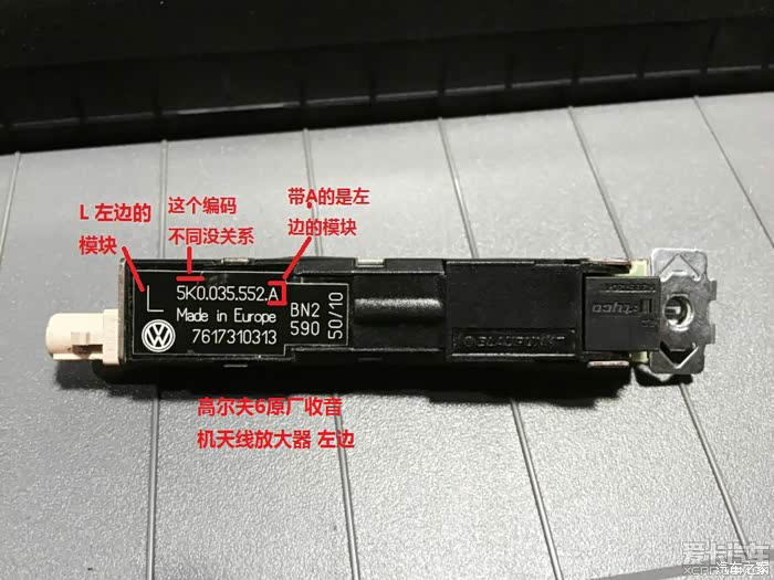 不废话,咱们边看图边说PQ35平台后挡天线电路图,理论上后挡有加热丝的都能安装,咱们今天把它变成现实这是后拍的,有车友不知道怎么拆C柱板,其实很简单,直接从顶棚接头处掰开装回去的时候注意这个卡子,拿下来装到C柱上装好是这样的,然后扣回装饰板,要注意卡子对准这是原厂接法,蓝线FM信号,黑线AM信号,咱的车没有AM天线,所以这样改好后是收不到AM信号咱主要是为了恢复导航实时路况和收音机,原车的天线装鲨鱼鳍的时候拆了。再说在行车中也听不了AM台,所以有没有也无所谓下面是主题,这是网购的配件,配件名称型号都有。卖家发货的时候发错了插头,不过不要紧,咱也办法解决实物图这是网上找的图,功能是一样的,改装的...