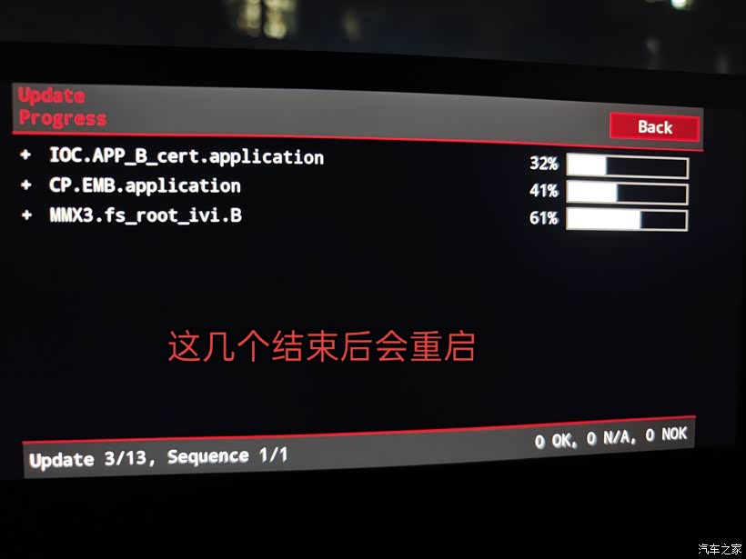 此时就将进入升级过程,升级过程比较长,建议在升级前将车辆停放到合适位置,并保持发动机启动状态,防止在升级过程中车辆电量不足。
