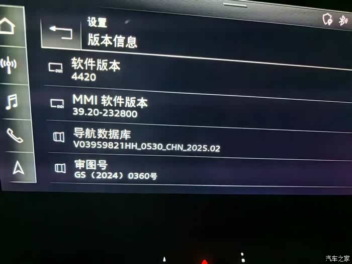 3874升级后,版本信息中软件版本4420,MMI软件版本39.20,但无导航数据库信息,打开导航“正在初始化导航系统,请稍候……”进度50%左右持续不动。