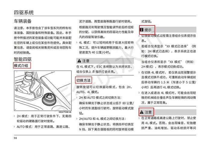我也是一个小白,但我是这么理解的,4H我们可以在沙地或者冰雪路面上开,但如果在铺装路面上开也可以,但不要开的太快50-60公里可以吧? 2H我们平时用来上下班用就好了,4L就不用多说了(这里我说一下4L达到前后50%比来脱困,是分动箱起作用来分配的)。。。但我最后有一个问题就是这台坦克300到底有没有中央差速器存在的?可以有人解答我这个问题吗?因为 他有4H这个档位的存在让我不得不怀疑它有中央差速器存在,因为帕杰罗也是这样的超先四驱系统(对了超先四驱也分时四驱的一类吧?)