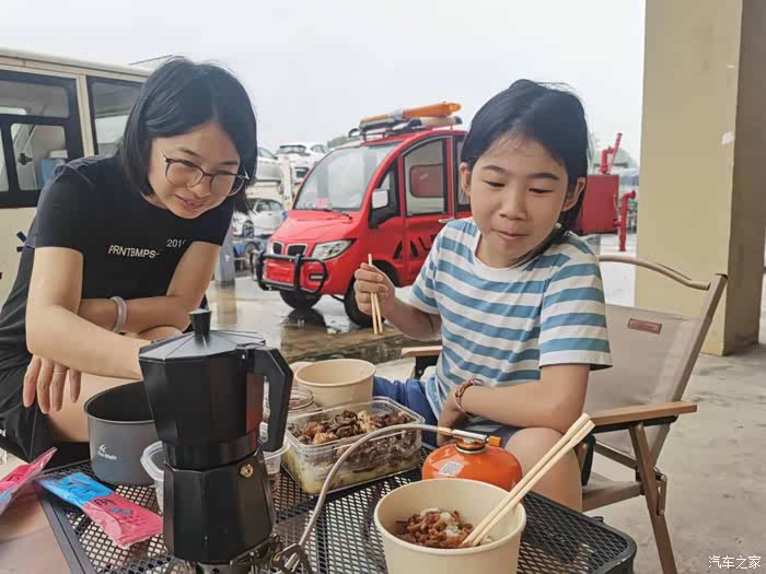 支起小桌子,烧点开水,妈妈煮好带来的牛肉、带鱼配米饭也是异常丰盛了,再来一杯手磨咖啡,完美。