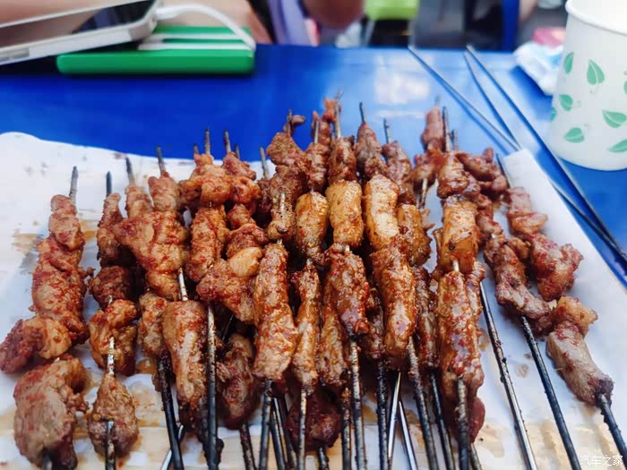 我们选了一家烤肉,那生意好的里面的烤肉师傅每个人都是上百串的烤,看着就带劲。一盘烤肉下去好了,肚子又交待了。