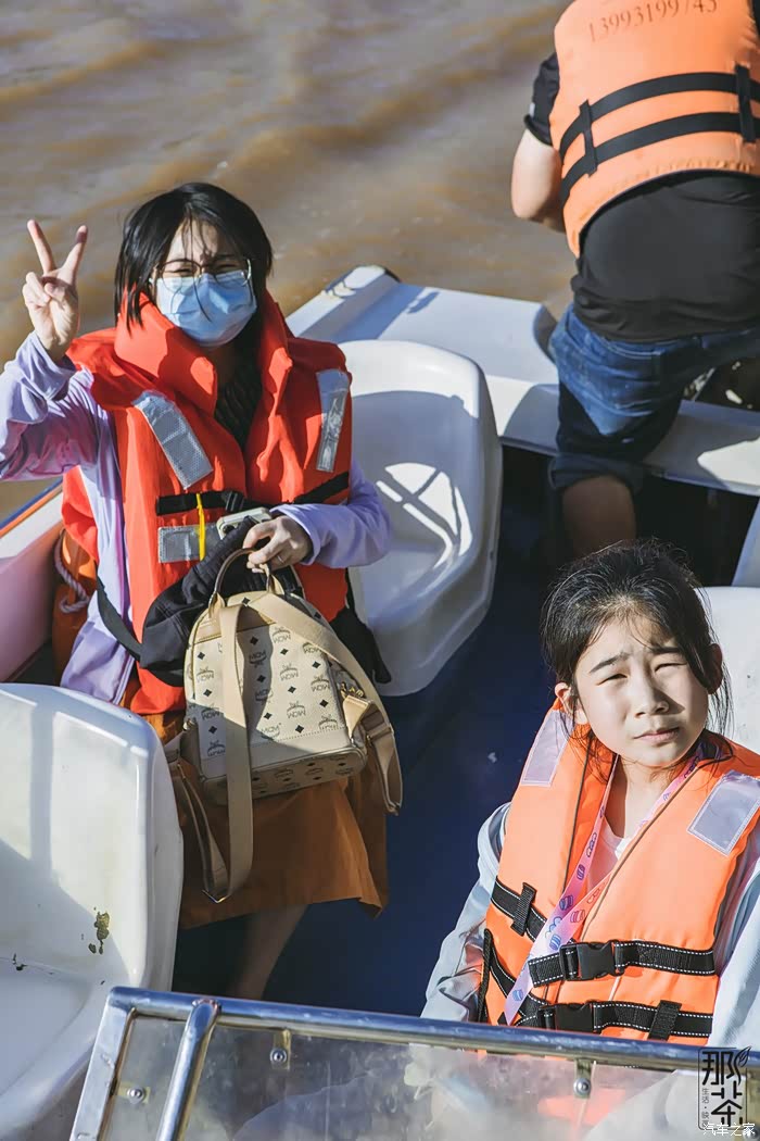 逛完博物馆回酒店,把车停好,今天也让它休息休息了,步行前往中山桥。这时的中山桥人气那个旺啊,全是人,对面的公园我们也就看看懒得爬了。走到黄河边,一溜沿河雅座,喝茶聊天人气爆棚,我们一家子体验了下快艇,也算是跟黄河近距离接触了,还看到大名鼎鼎的羊皮筏子但是感觉有点危险没敢尝试。