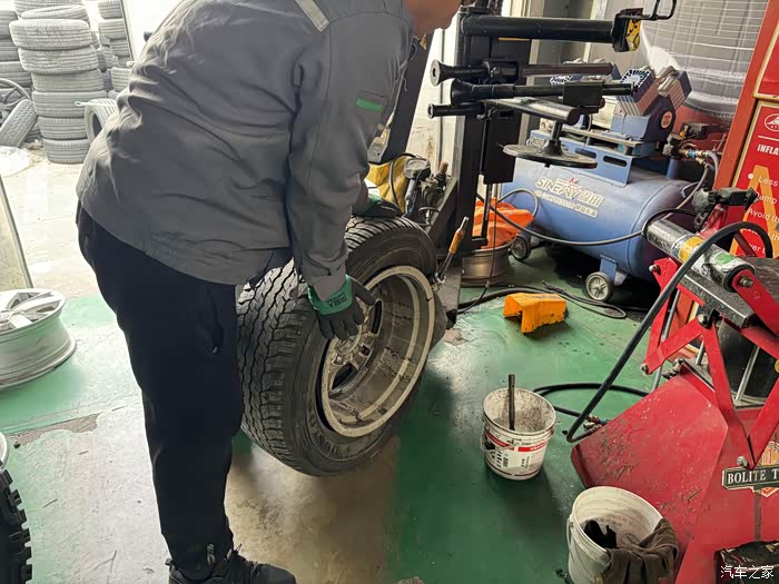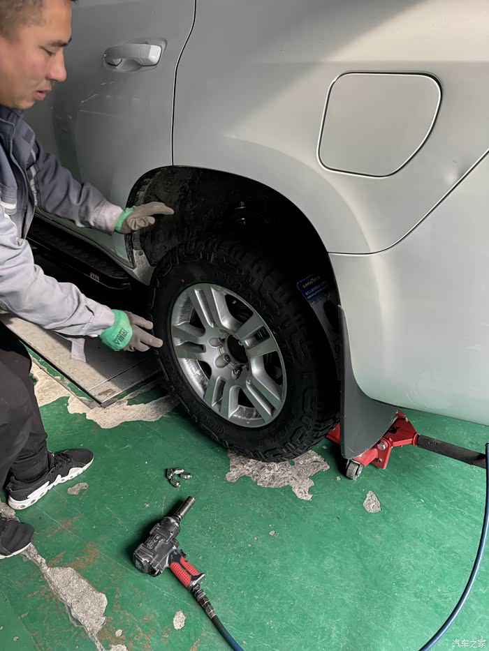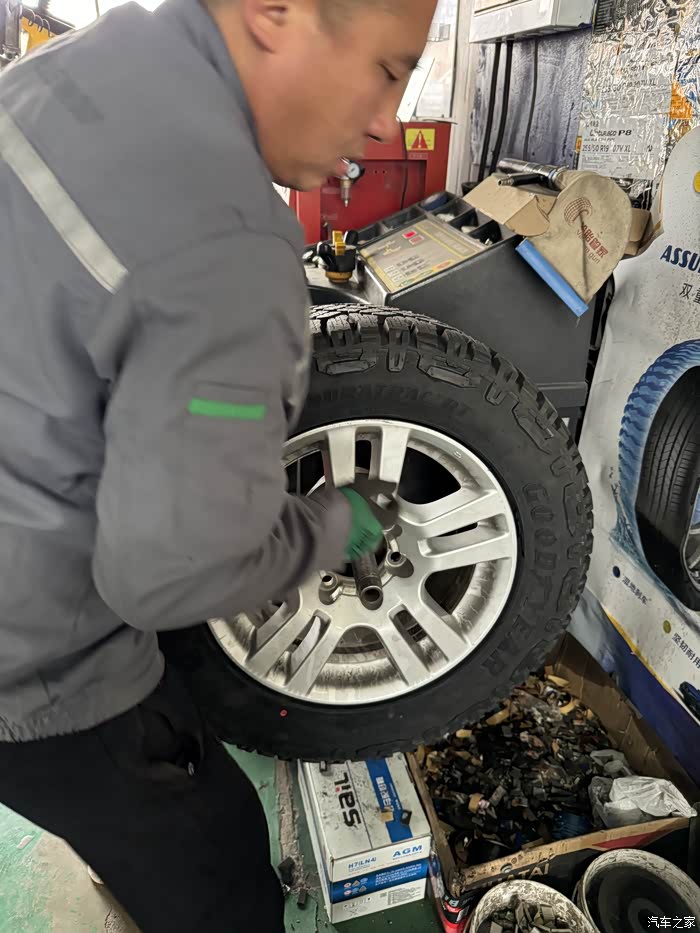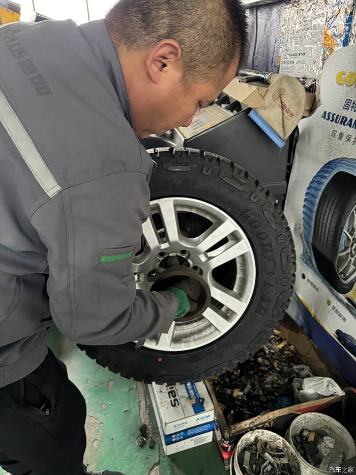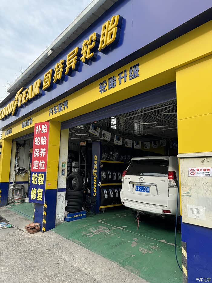 不知道为什么,固特异的专卖店,师傅穿着米其林驰加的工作服。
