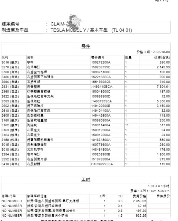 在特斯拉app上预约维修后,直接把车开到服务中心,剩下维修和理赔款的事情,让特斯拉的工作人员对接保险公司。并要求特斯拉服务中心该换的零件不要修理。