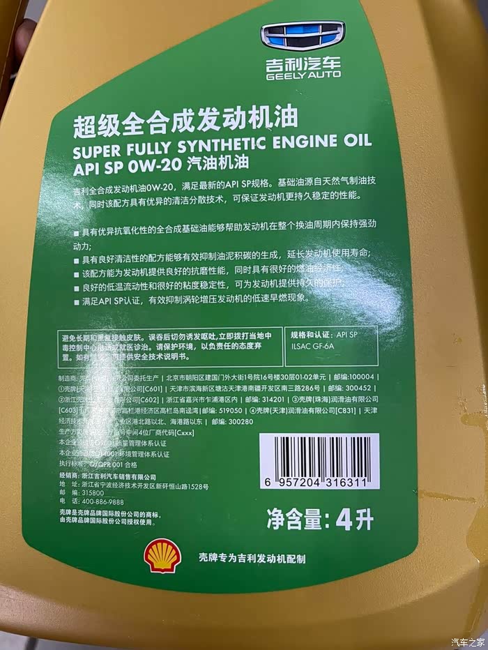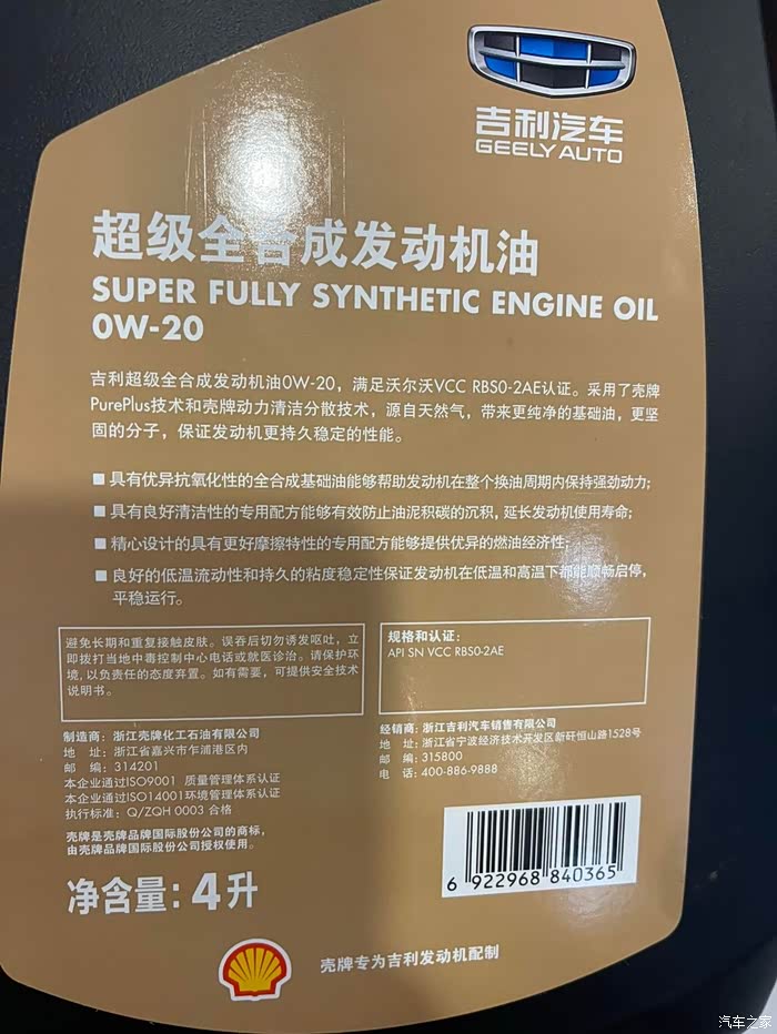 2.0t 的吉利机头要 符合 2ae 的,新款吉利绿壳原厂机油,我估计是锐净换壳,高温剪切数达不到要求 但是能用 慢慢开