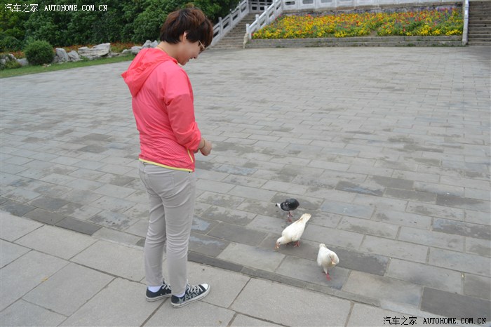 老婆出镜,用面包在喂食鸽子,那是我的口粮