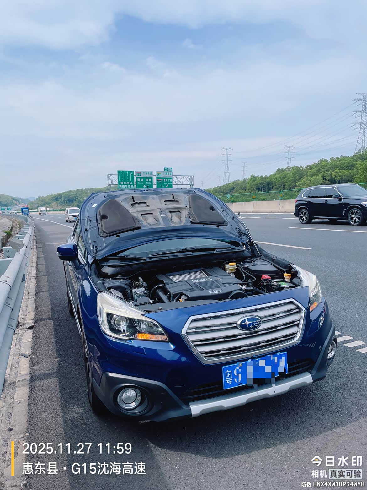 驾车从东莞出发往潮汕方向,在沈海高速行驶到惠州惠东路段的时候,前机盖突然打开,一声巨响……拍在了前挡玻璃上