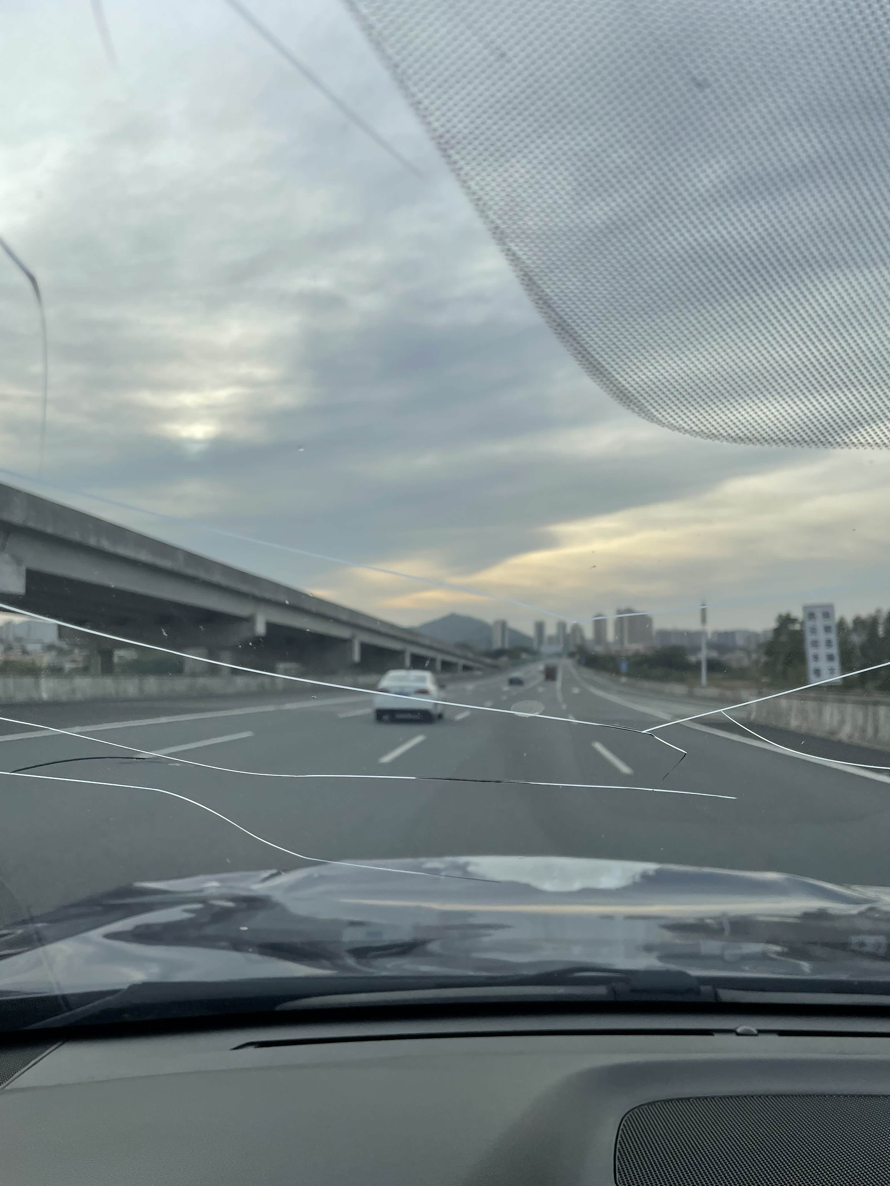 机盖,前挡玻璃,翼子板受损……看这情况我只能先去修车了,把机盖用绳子固定好,掉头回东莞……一天时间就耗在这起意外事件了……想不到短视频里掀机盖的情节被我真实遇到了……